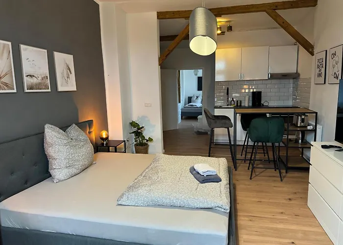 Appartement "Nina"Im Dachgeschoss, Inklusive Parkplatz dairesinde tam donanımlı mutfağın yanı sıra oturma alanı, televizyon, uydu kanallı düz ekran televizyon içeren odalar bulunmaktadır. Daire, Halloren Çikolata Fabrikası'a arabayla 10 dakikalık mesafede bulunur.